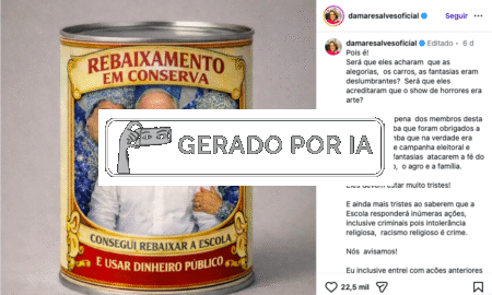 O deputado Mário Frias (PL-SP) e a senadora Damares Alves (Republicanos-DF) usaram inteligência artificial para satirizar o rebaixamento de escola de samba que homenageou Lula na Sapucaí. Os parlamentares publicaram imagens sintéticas que mostram o presidente e a primeira-dama Janja em uma embalagem de alimentos em conserva – em referência a uma das alegorias do desfile da Acadêmicos de Niterói. “Rebaixamento em conserva”, diz o texto na lata.