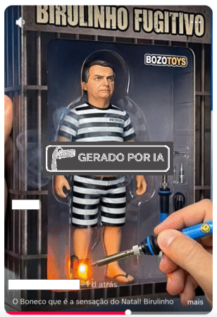Publicações nas redes sociais geradas por inteligência artificial foram usadas para satirizar a prisão preventiva de Jair Bolsonaro (PL) no dia 22 de novembro. Vídeos que circularam no TikTok e Instagram manipulam a imagem do ex-presidente com técnica conhecida como deepfake para ridicularizar sua tentativa de romper a tornozeleira eletrônica com um ferro de soldar. Em um deles, Bolsonaro aparece fazendo curso de soldador no Senai. Outros criaram bonecos de ação do ex-presidente que acompanham ferro de solda.