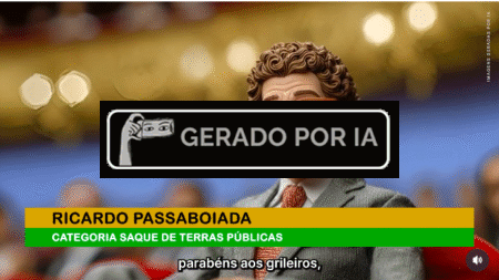 O PSOL (Partido Socialismo e Liberdade) usou inteligência artificial para criar vídeo contra desmatamento ilegal nas redes sociais. O conteúdo, que foi publicado no perfil oficial de Instagram do partido, simula uma premiação satírica para responsáveis por desmatamento, premiando o ‘agronegócio predatório’, ‘garimpeiros ilegais’ e ‘grileiros’, representados por bonecos de ação. Um deles, se assemelha ao deputado federal e ex-ministro do Meio Ambiente, Ricardo Salles (NOVO-SP).